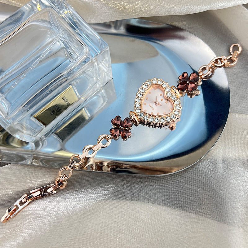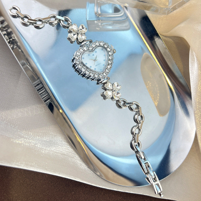 Radiant and dreamlike, the Bellora Seraphique Watch embodies the charm of timeless romance and celestial elegance. Its shimmering heart-shaped face and dazzling crystal accents evoke a sense of magical allure—crafted for the woman who exudes grace in the most delicate yet captivating way. With its luminous blue tones and ethereal floral gems, it becomes more than an accessory; it becomes a symbol of refined enchantment, a jewel that whispers elegance in every moment.