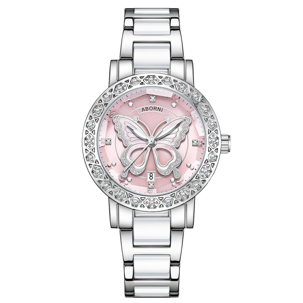 Ethereal and captivating, the Aurélise Mirabelle Watch embodies the graceful charm of luminous elegance. Its polished silver finish and delicate butterfly motif create a soft, enchanting glow perfect for the woman who shines with quiet confidence. Sparkling accents complete its refined beauty, making it a timeless piece of delicate allure.